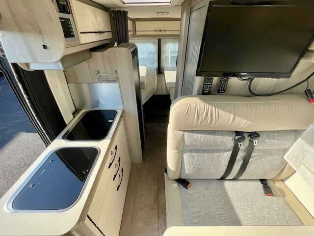 motorisation 2.3L180cv, caméra de recul, autoradio Bluetooth et GPS, suspension pneumatique arrière, climatisation porteur, TV, régulateur et limiteur de vitesse, grand frigo, stores REMIS, panneau solaire, store extérieur, batterie lithium, convertisseur, douchette extérieure, SOG sur cassette toilette, jantes alu 16", chauffage gasoil, antibrouillards avant, antenne satellite automatique, lit jumeaux