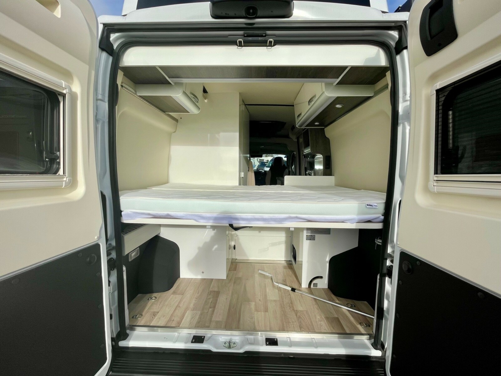 Lit arrière : Système de lit Westfalia grand confort sur sommier Froli.